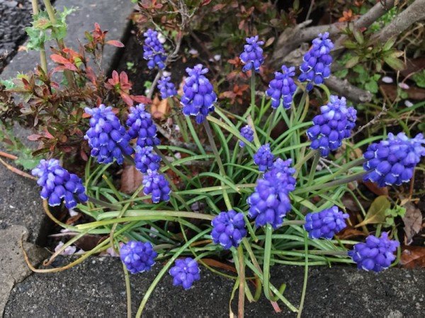 足元を見ると、青いムスカリを発見致しました。鮮やかで綺麗です。