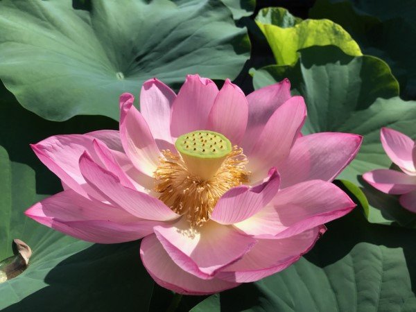葉もいつの間にか垣根の高さを超えています。植物のパワーを感じますね。蓮の花言葉は、「清らかな心」。・・・ムムム、常に持っていたいものですね。。。