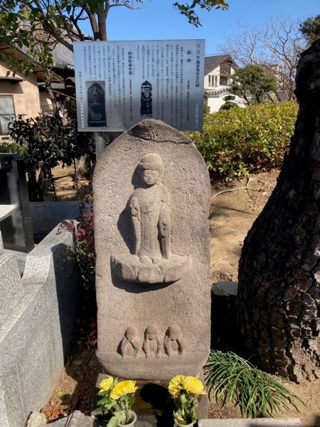 さて、実正寺様の境内には、様々な文化財がありますが、こちらは、阿弥陀康申塔になります。川口市の指定有形文化財になっています。江戸時代の寛文5年(1665年)に建立されたもので、阿弥陀如来と三猿が彫られています。