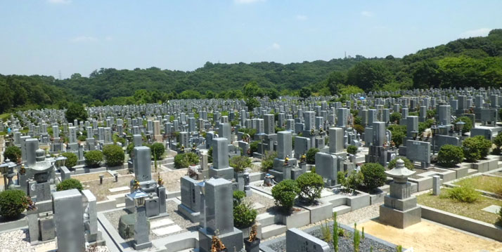 堺市の中で貴重な自然が残された南部丘陵の鉢ヶ峯に位置し、48.9hの広大な敷地のなか2万数千の墓石が立ち並びます。